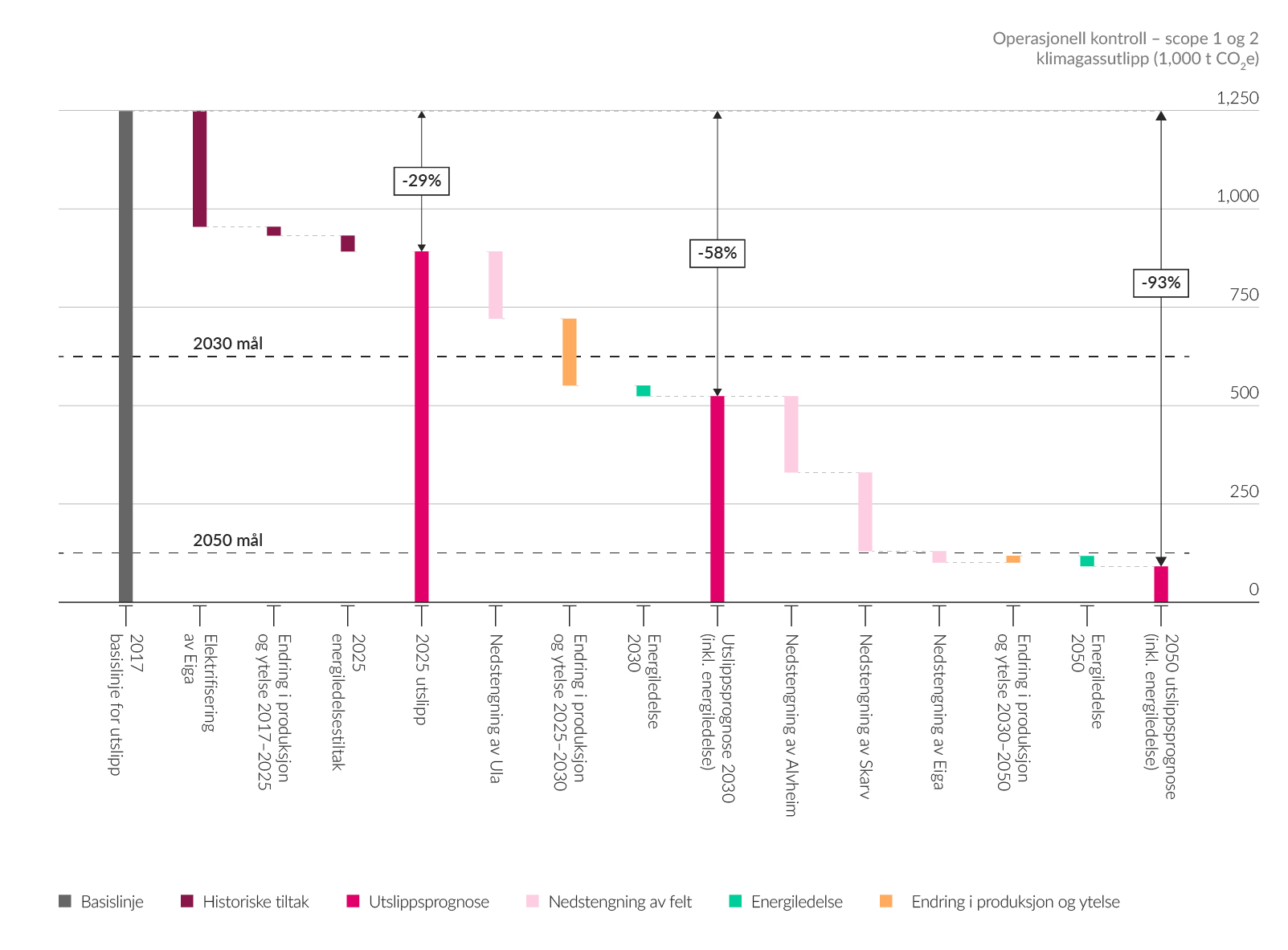 Veien mot 90% reduksjon i scope 1 og 2 GHG-utslipp (operasjonell kontroll) innen 2050